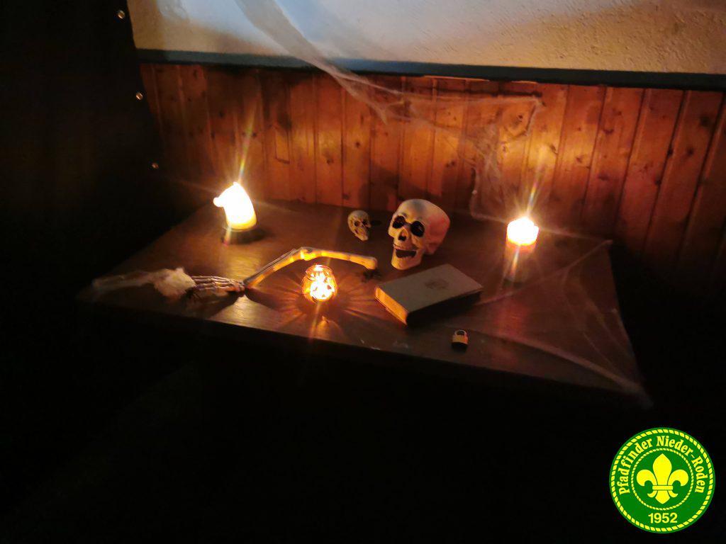 Herbstlich gruselig ging es auch in diesem Jahr wieder beim Gemeinschaftslager der Wölflings- und Jungpfadfinder/Pfadfinderstufe zu. Gemeinsam wurde gespielt und Laternen gebaut. Am Samstagabend gab es dann einen Grusel Escape Room für die Wölflinge. Sie mussten eifrig rätseln, um durch 6 Räume endlich ins Freie zu gelangen und wurden dabei natürlich ständig von gruseligen Zeitgenossen gestört. Ein großer Spaß für beide Seiten.