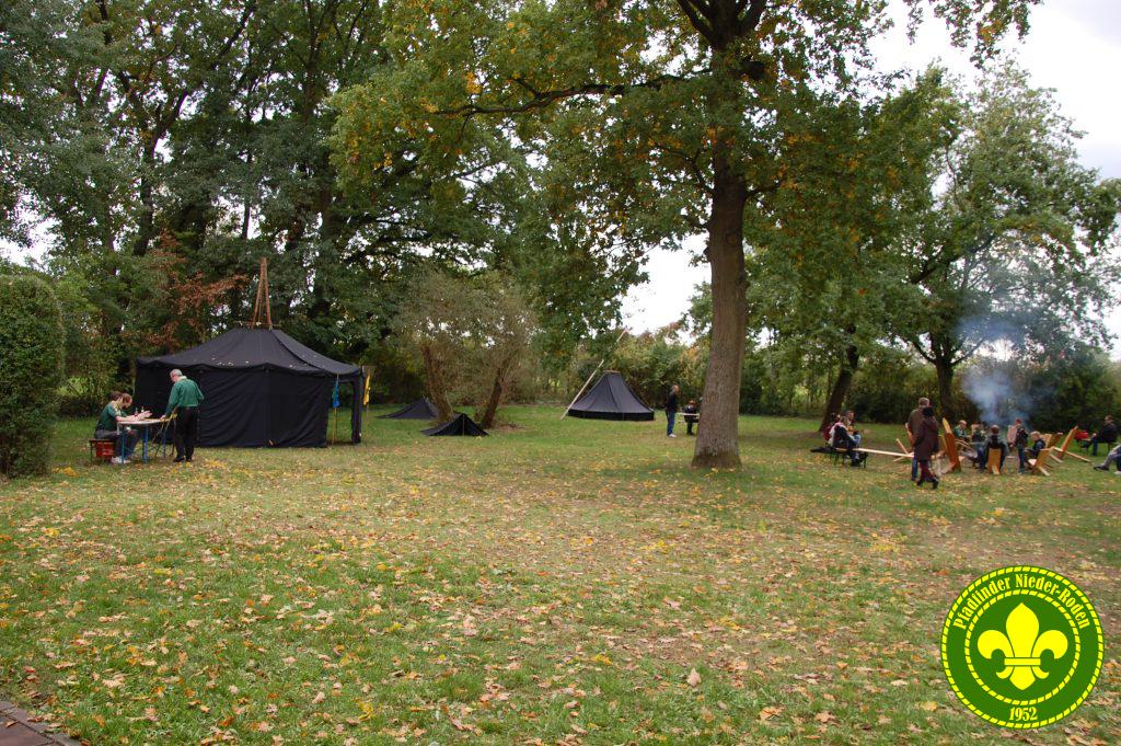 Zwei Zeltplätze von je ca. 1700m² mit Feuerstellen und unsere Lodge – eine große Halle für etwa 80 Personen – stehen zur Verfügung. Kohtenstangen (lange Holzstangen für Zelte) stehen in reichlicher Anzahl bereit. Außerdem stehen zehn Festzeltgarnituren zur Verfügung.