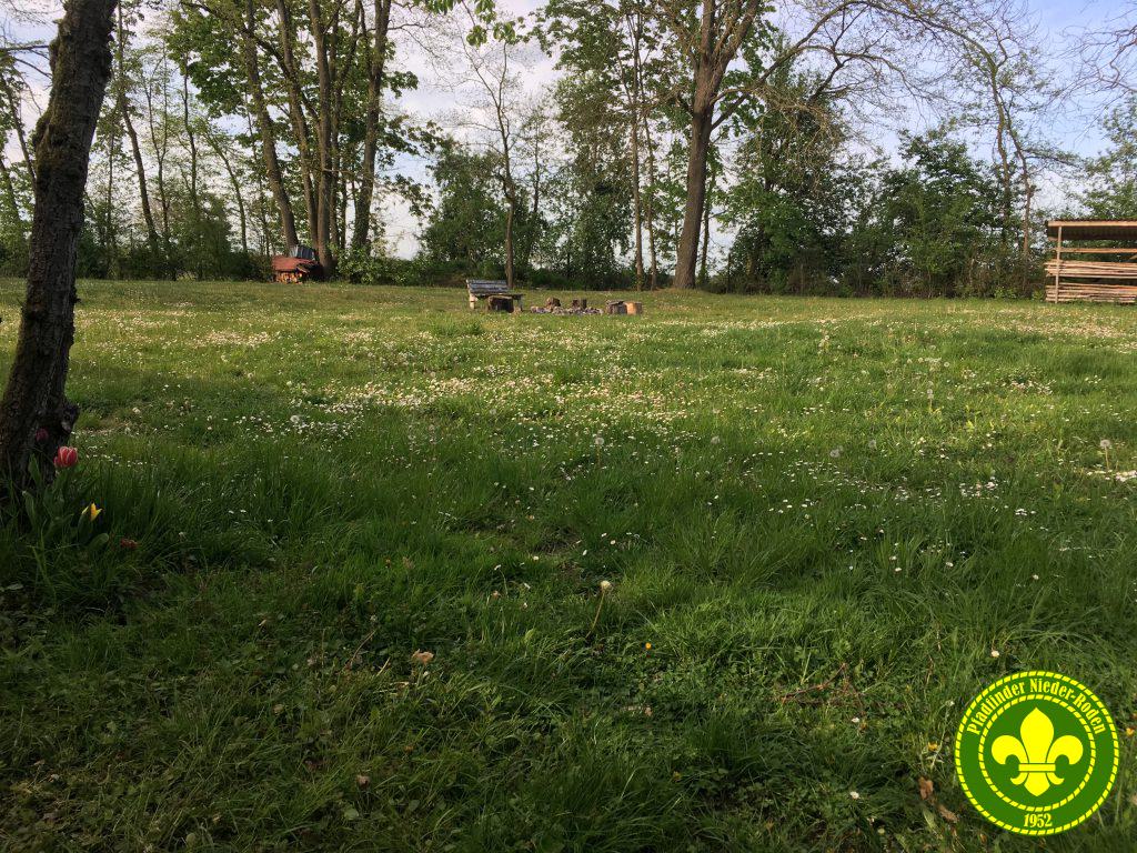 Das Pfadfindergelände ist ca. 5500m² groß und rundum mit Bäumen bewachsen.